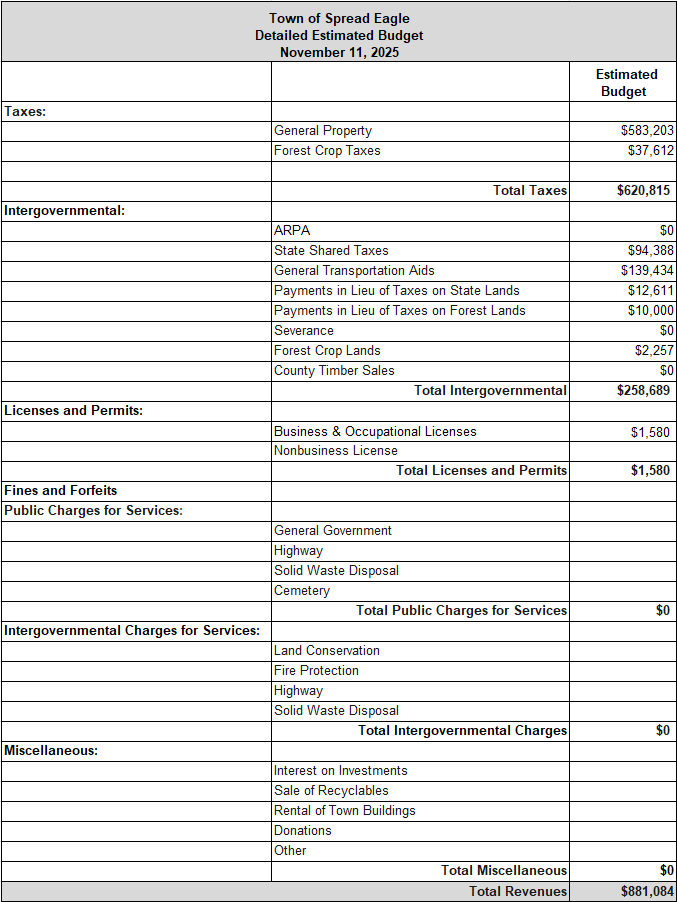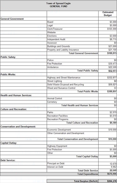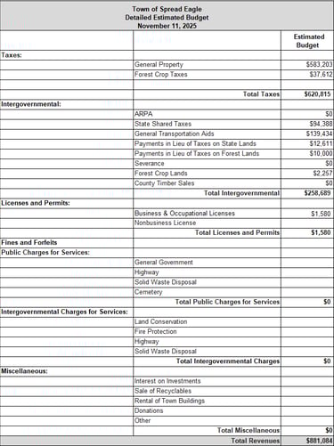 Preliminary Estimated Budget